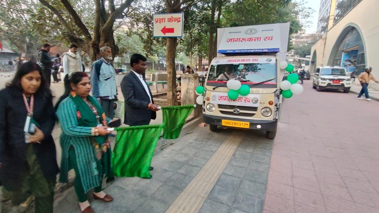 रांची : रांची के उपायुक्त-सह-जिला दंडाधिकारी मंजुनाथ भजन्त्री ने समाहरणालय परिसर से खाद्य, सार्वजनिक वितरण एवं उपभोक्ता मामले विभाग, झारखंड सरकार द्वारा संचालित विभिन्न योजनाओं की जानकारी एवं जागरूकता फैलाने के उद्देश्य से विशेष जागरूकता रथ को हरी झंडी दिखाकर रवाना किया है। ये जागरूकता रथ मुख्य रूप से खरीफ विपणन मौसम 2025-26 के तहत चल रहे धान अधिप्राप्ति अभियान के बारे में किसानों को जागरूक करने के उद्देश्य से रवाना किया गया है।