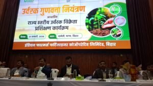 पटना : बिहार कृषि विभाग के मार्गदर्शन में केन्द्रीय उर्वरक गुणवत्ता नियंत्रण एवं प्रशिक्षण संस्थान, फरीदाबाद (हरियाणा) तथा इफको के संयुक्त तत्वावधान में दिनांक 31 जनवरी 2026 को बिहार कृषि प्रबंधन एवं विस्तार प्रशिक्षण संस्थान (बामेती), पटना में बिहार राज्य के उर्वरक विक्रेताओं हेतु एक दिवसीय उर्वरक गुणवत्ता नियंत्रण आधारित प्रशिक्षण कार्यक्रम का आयोजन किया गया। कृषि निदेशक, बिहार सौरभ सुमन यादव द्वारा कार्यक्रम का विधिवत शुभारंभ किया गया।