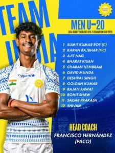 एशिया रग्बी U20 रग्बी 7s चैंपियनशिप 2025, बिहार के लिए भारतीय रग्बी टीम घोषित*