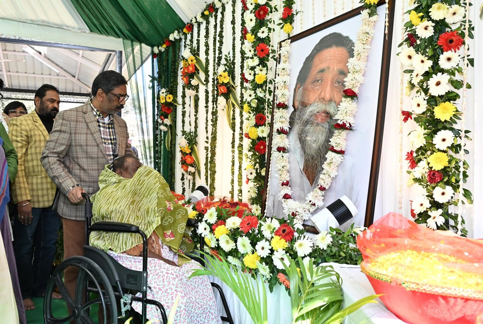 इस अवसर पर मंत्री हफीजुल हसन, सुदिव्य कुमार, राज्यसभा सांसद जोबा माजी, झारखंड मुक्ति मोर्चा के वरिष्ठ नेता विनोद पांडे, सुप्रियो भट्टाचार्य सहित अनेक जनप्रतिनिधियों, पार्टी पदाधिकारियों और कार्यकर्ताओं ने भी गुरुजी की तस्वीर पर पुष्प अर्पित कर उनके योगदान को याद किया।