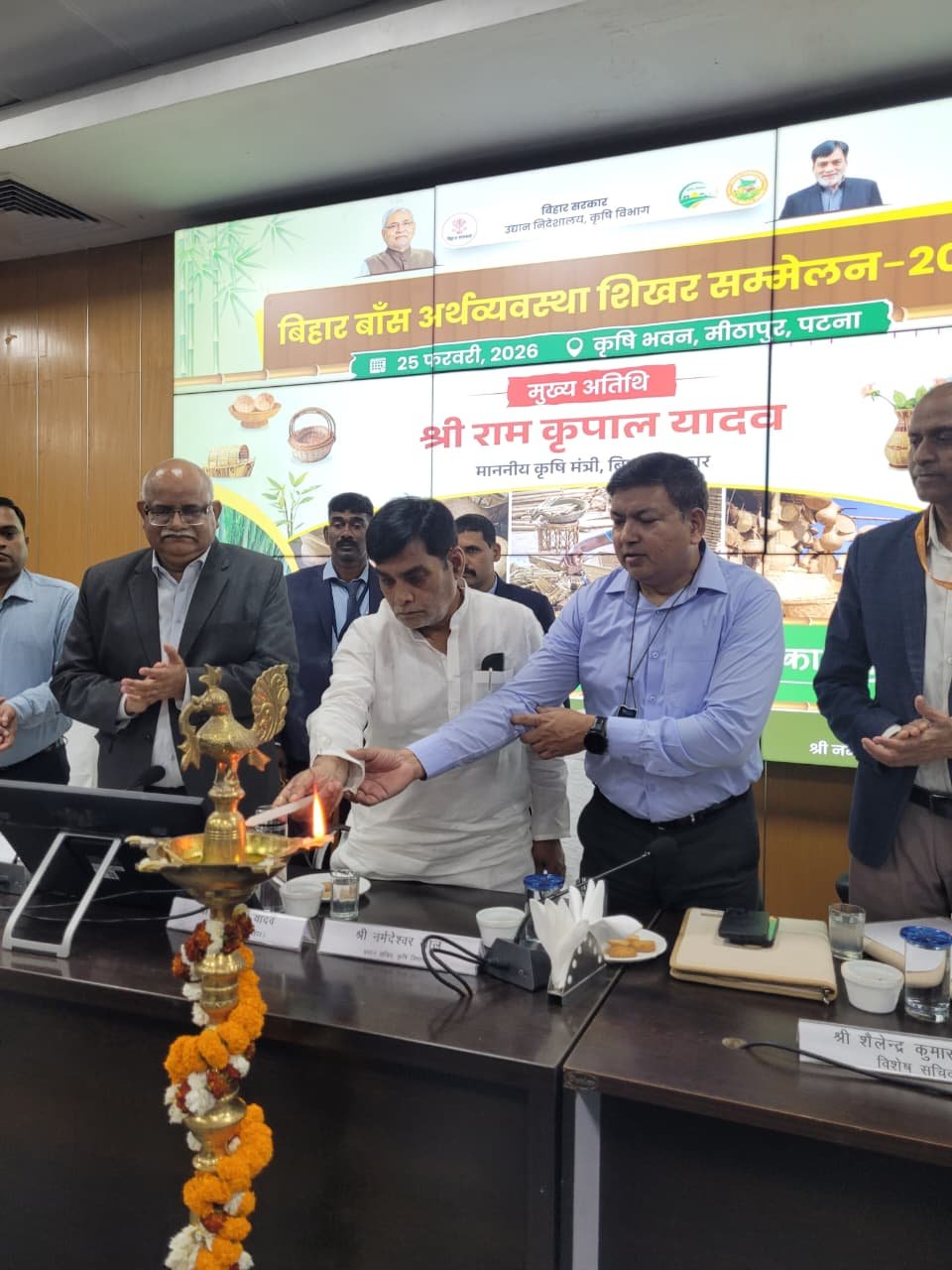 पटना : राज्य में बांस की खेती करने वाले किसानों और इससे जुड़े कारीगरों की आय बढ़ाने के लिए बुधवार को मीठापुर अवस्थित कृषि भवन में बिहार बांस अर्थव्यवस्था शिखर सम्मेलन 2026 का आयोजन किया गया। इसका उद्घाटन करते हुए कृषि मंत्री राम कृपाल यादव ने कहा कि बांस की खेती को बढ़ावा देने के लिए प्रशिक्षण, उपकरण और बाजार आदि जरूरतों को पूरा किया जाएगा। बांस से बने उत्पाद किसानों और कारीगरों को अच्छा मूल्य दिलाने की क्षमता रखते हैं। इसलिए इसकी खेती के लिए किसानों को जरूरी सहयोग और प्रोत्साहन दिया जाएगा।