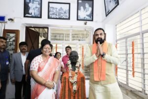 पटना: मुख्यमंत्री सम्राट चौधरी ने कदमकुआं स्थित लोकनायक जयप्रकाश नारायण जी के आवास (महिला चरखा समिति) परिसर में स्थापित लोकनायक जयप्रकाश नारायण एवं उनकी धर्मपत्नी स्व० प्रभावती देवी की प्रतिमा पर माल्यार्पण कर उन्हें नमन किया। इस दौरान मुख्यमंत्री ने महिला चरखा समिति का निरीक्षण किया।