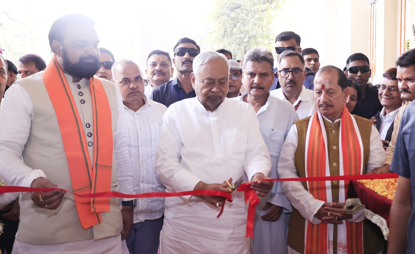 पटना : मुख्यमंत्री नीतीश कुमार ने 147.29 करोड़ रूपये की लागत से पटना विश्वविद्यालय, पटना के नवनिर्मित प्रशासनिक भवन एवं शैक्षणिक भवन (कला संकाय) का शिलापट्ट अनावरण कर एवं फीता काटकर उ‌द्घाटन किया। इसके पश्चात् मुख्यमंत्री ने पटना विश्वविद्यालय के नवनिर्मित प्रशासनिक एवं शैक्षणिक भवन (कला संकाय) का निरीक्षण किया और वहां की व्यवस्थाओं एवं सुविधाओं की जानकारी ली।