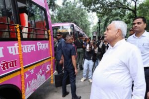 पटना : मुख्यमंत्री नीतीश कुमार ने आज 1 अणे मार्ग से सुगम परिवहन हेतु महिलाओं के लिए द्वितीय चरण में 80 पिंक बसों को हरी झंडी दिखाकर रवाना किया। साथ ही मुख्यमंत्री ने बिहार राज्य पथ परिवहन निगम की सभी 1065 बसों में ई-टिकटिंग सुविधा का शुभारंभ किया। मुख्यमंत्री ने बसों को रवाना करने के पूर्व बसों का निरीक्षण किया और उसमें उपलब्ध सुविधाओं की जानकारी ली।