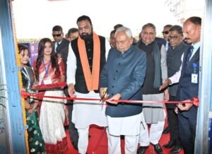 पटना :  मुख्यमंत्री नीतीश कुमार ने आज समृद्धि यात्रा के क्रम में सारण जिले में विभिन्न विकासात्मक योजनाओं का जायजा लिया। इस दौरान उन्होंने अधिकारियों से प्रगति यात्रा के दौरान की गई घोषणाओं के क्रियान्वयन के संबंध में जानकारी ली और कार्य तेजी से पूर्ण करने का निर्देश दिया। जायजा के क्रम में मुख्यमंत्री ने राधे कृष्ण जीविका महिला संकुल संघ द्वारा संचालित दीदी का सिलाई घर, प्रशिक्षण सह उत्पादन केंद्र के शिलापट्ट का अनावरण कर उद्घाटन किया। उद्घाटन के पश्चात मुख्यमंत्री ने दीदी का सिलाई घर, प्रशिक्षण सह उत्पादन केंद्र का निरीक्षण किया। निरीक्षण के दौरान अधिकारियों ने मुख्यमंत्री को बताया कि ग्रामीण विकास विभाग अंतर्गत बिहार ग्रामीण जीविकोपार्जन प्रोत्साहन समिति, जीविका द्वारा प्रखंड कार्यालय, बड़ा तेलपा, छपरा के परिसर में स्थापित इस केंद्र से कुल 60 महिलाएं जुड़ी हुई हैं। सिलाई केंद्र की महिलाओं ने मुख्यमंत्री का अभिनंदन करते हुए कहा कि आपके द्वारा शुरु की गई मुख्यमंत्री महिला रोजगार योजना हम सभी के लिए वरदान साबित हुई है। सभी बेरोजगार महिलाएं अब रोजगार से जुड़ चुकी हैं। आपने महिला सशक्तीकरण के लिए काफी काम किया है। इससे महिलाओं में आत्मविश्वास जगा है। इसके लिए हम सभी आपके आभारी हैं।