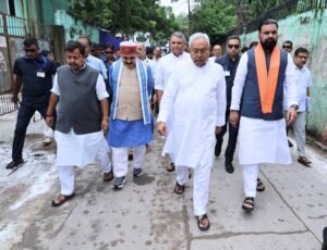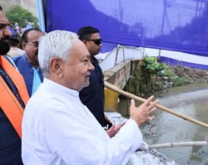 पटना : मुख्यमंत्री नीतीश कुमार ने आज पटना जिलान्तर्गत आशियाना दीघा रोड में राजीव नगर के पास बने कार्यक्रम स्थल से 181 करोड़ रुपये लागत की कुर्जी नाला (राजीव नगर नाला) निर्माण योजना का तथा राजापुर पुल के पास बने कार्यक्रम स्थल से 91.27 करोड़ रुपये लागत की आनन्दपुरी नाला निर्माण योजना का शिलापट्ट अनावरण कर शिलान्यास किया। मुख्यमंत्री ने शिलान्यास करने के पश्चात् कुर्जी नाला (राजीव नगर नाला) एवं आनंदपुरी नाला का निरीक्षण भी किया। निरीक्षण के दौरान मुख्यमंत्री ने कहा कि इस नाला निर्माण योजना के अंतर्गत नाले का पक्कीकरण किया जाएगा और इसके ऊपर सड़क का निर्माण किया जाएगा। उन्होंने अधिकारियों को निर्देश देते हुए कहा कि इन कार्यों को तेजी से पूर्ण करें। कार्यक्रम के दौरान वहां उपस्थित जनसमूह ने मुख्यमंत्री का पूरे उत्साह के साथ भव्य स्वागत किया और इस विकास कार्य के लिये उनका आभार व्यक्त किया।