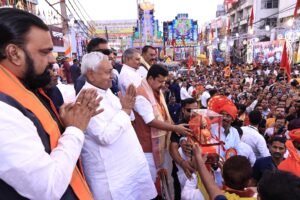 पटना : मुख्यमंत्री नीतीश कुमार आज शाम श्री रामनवमी के अवसर पर पटना के डाकबंगला चौराहा पर श्री श्री रामनवमी शोभा यात्रा अभिनन्दन समिति द्वारा आयोजित कार्यक्रम में शामिल हुये।