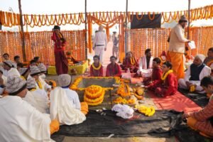 कैलाश मानसरोवर से रामेश्वरम तक के पवित्र जल से अभिषेक हुआ। अयोध्या राम मंदिर, काशी विश्वनाथ सहित देशभर से पंडित शामिल हुए। दो 750 टन क्षमता वाली क्रेन, 18 फीट की विशेष माला और हजारों फूलों से सजी यह स्थापना आस्था का अद्भुत संगम बना।