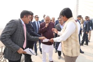 पटना : मुख्यमंत्री नीतीश कुमार ने आज कच्ची दरगाह-बिदुपुर 6 लेन गंगा पुल परियोजना के द्वितीय चरण के हाजीपुर-महनार पथ से चकसिकंदर तक के निर्माण कार्य का जायजा लिया।