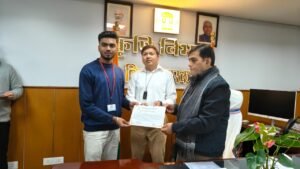 पटना: कृषि मंत्री रामकृपाल यादव द्वारा कृषि भवन, पटना स्थित अपने कार्यालय कक्ष में बिहार के विभिन्न अभियंत्रण महाविद्यालयों के 20 छात्र-छात्राओं को सफल प्रशिक्षण उपरांत प्रमाण पत्र प्रदान किया गया। इस दौरान कृषि विभाग के प्रधान सचिव, नर्मदेश्वर लाल, कृषि निदेशक, सौरभ सुमन यादव एवं अपर सचिव मनोज कुमार उपस्थित थे। यह प्रशिक्षण कार्यक्रम राज्य सरकार की उस दूरदर्शी पहल का हिस्सा है, जिसके अंतर्गत तकनीकी शिक्षा प्राप्त कर रहे युवाओं को व्यावहारिक अनुभव से जोड़कर कृषि क्षेत्र में आधुनिक तकनीक, नवाचार एवं ई-गवर्नेंस को सशक्त किया जा रहा है।