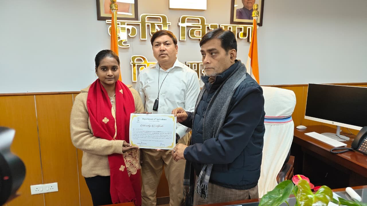 माननीय मंत्री ने सभी प्रशिक्षुओं के उज्ज्वल भविष्य की कामना करते हुए आशा व्यक्त की कि ये युवा अपनी अर्जित तकनीकी दक्षता, नवाचार क्षमता एवं डिजिटल कौशल का उपयोग राज्य के कृषि विकास को गति देने में करेंगे। उन्होंने युवाओं से आह्वान किया कि वे खेती को अधिक सशक्त, लाभकारी एवं टिकाऊ बनाने हेतु अपने ज्ञान का समर्पित भाव से उपयोग करें, जिससे प्रदेश की समृद्धि को नई दिशा मिल सके। इस कार्यक्रम के अवसर पर कृषि विभाग के वरिष्ठ पदाधिकारीगण एवं प्रशिक्षु छात्र-छात्राएँ उपस्थित रहे।