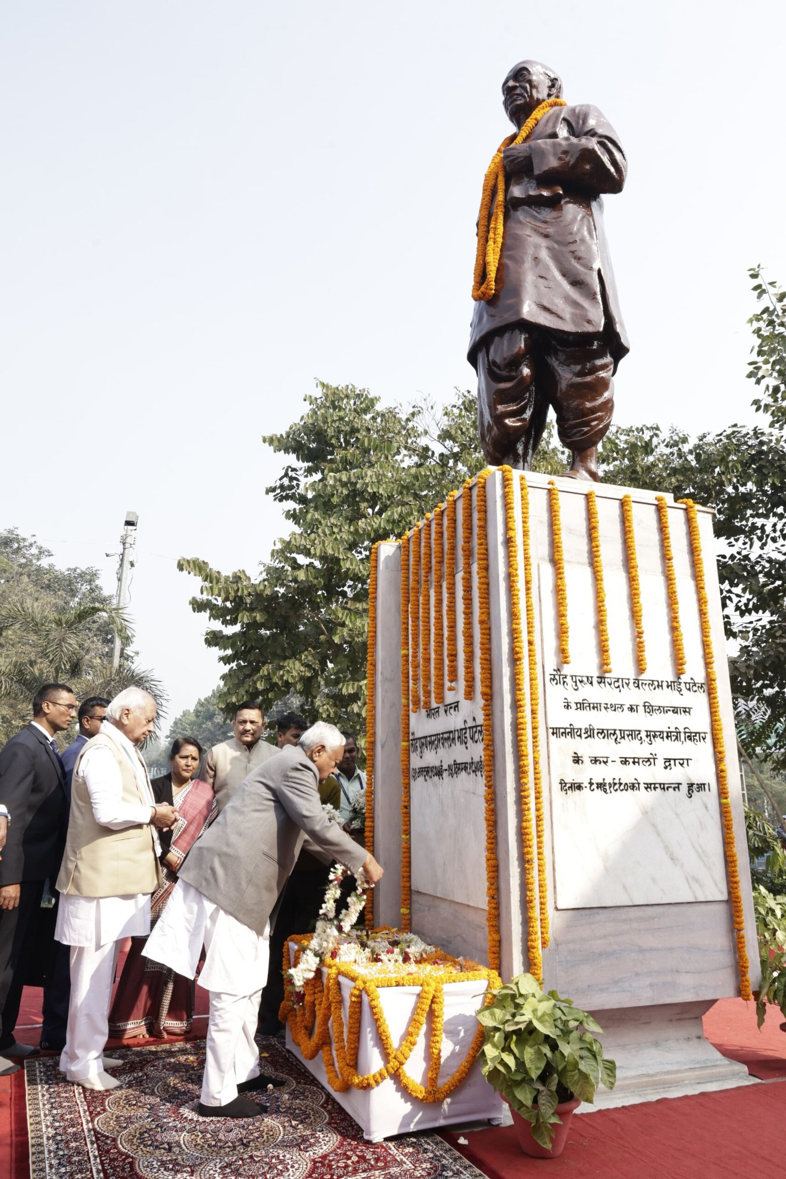 पटना : लौह पुरुष सरदार वल्लभ भाई पटेल जी की पुण्यतिथि पर राजकीय समारोह का आयोजन पटेल चौक, चितकोहरा पुल के निकट सरदार वल्लभ भाई पटेल प्रतिमा प्रांगण में किया गया। राज्यपाल श्री आरिफ मोहम्मद खान एवं मुख्यमंत्री श्री नीतीश कुमार ने स्व० सरदार वल्लभ भाई पटेल जी की आदमकद प्रतिमा पर माल्यार्पण कर उन्हें भावभीनी श्रद्धांजलि दी।